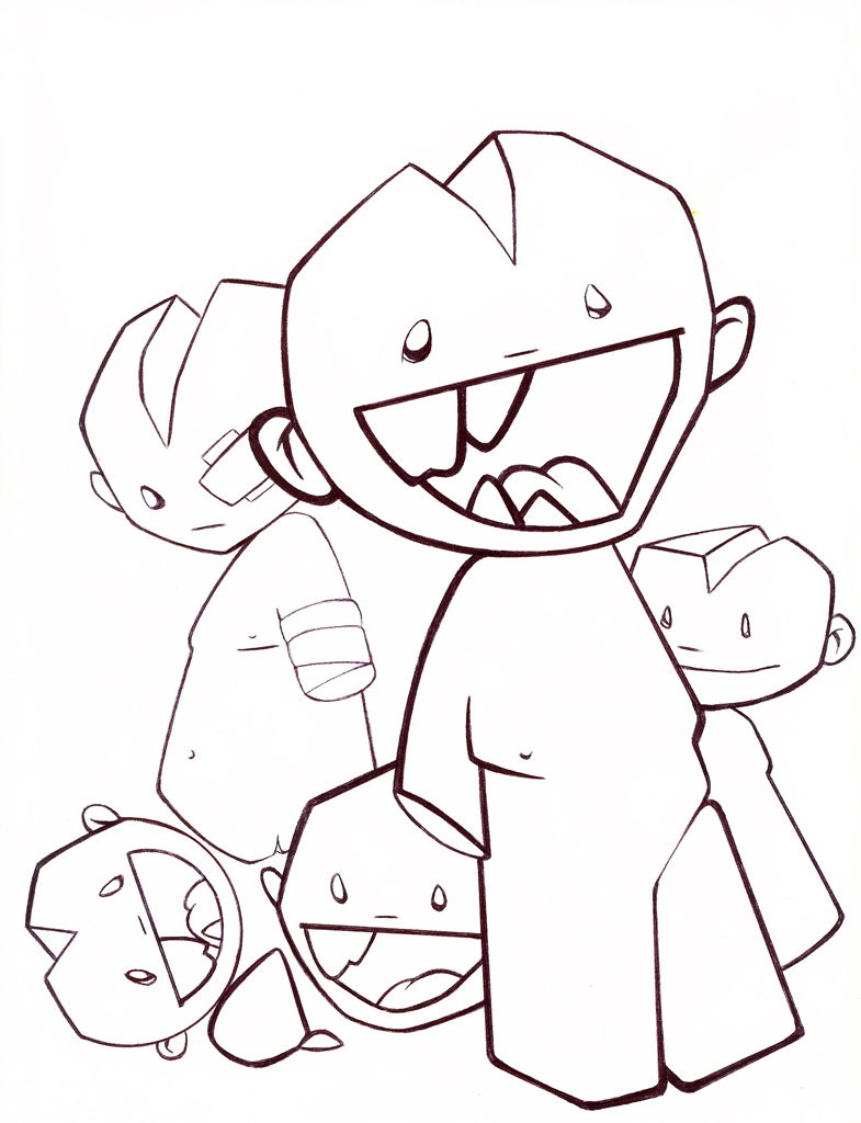 The Crack Babies were originally created in a college classroom during the first day of classes. I was unwarrantably warned by a professor to not illustrate any images with guns or images that degrade women. Being stereotyped in front of my peers sparked the creation of the first Crack Baby. I can still remember the day when I ignored his lecture and sketched the first baby.