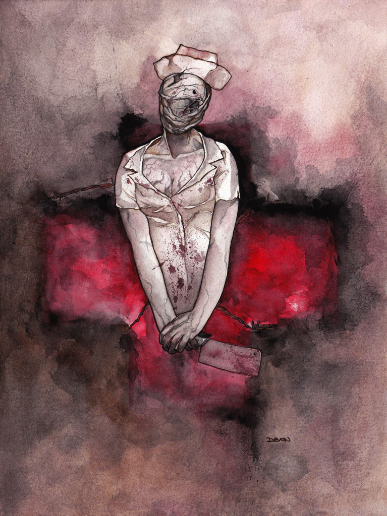 So, I should have posted this image on Halloween, but oh well. This piece was created for Yay! L.A. Magazine’s Horror Movie Day project. Over 100 artists from around the world chose a horror film to illustrate for this event. @yaylamg on Instagram released artwork on a daily basis throughout the month of October. #yayhmad is the official hashtag for the project. http://www.yaylamag.com also featured the work in their arts section every week and interviewed some of the artists from the project. It was a fun project. I’m actually a huge horror fan and I enjoyed the artistic interpretations of the films. My film was Silent Hill (2006). If you haven’t watched the film, just google “Silent Hill Nurse Scene”. The medium is watercolor of course.
